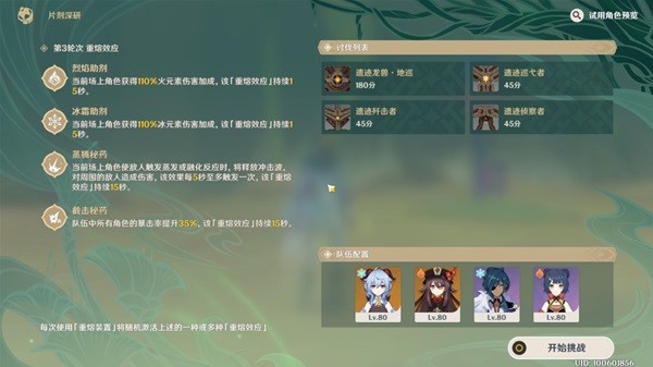 每个挑战中,需要使用活动提供的试用角色或自己拥有的角色进行连续3轮战斗。
