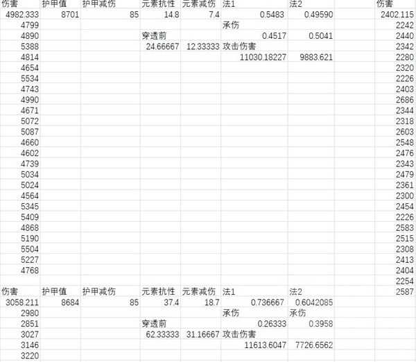 然后按照两版分别算出理论减伤值,算出二种情况初始攻击力;再更改元素抗性,再算出理论减伤值,及初始攻击力。