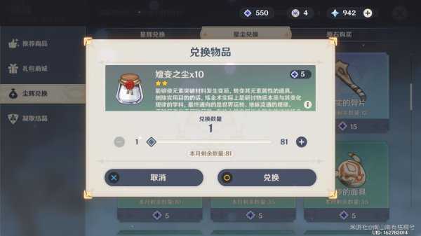 转化需要的嬗变之尘可以去商城尘辉兑换获得。5无主的星尘换10嬗变之尘。相当于250摩拉一个。