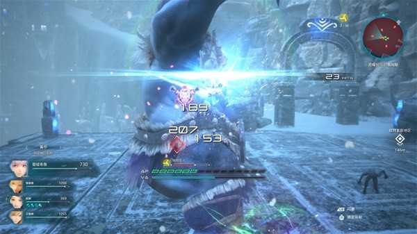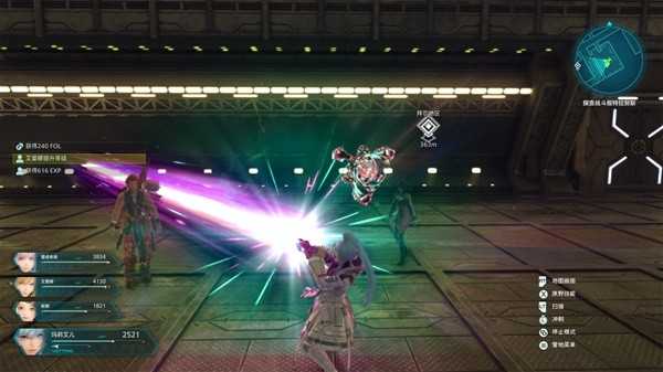 战斗时也可以用冲刺起手来完成战斗(每人的冲刺技能都不同,比如妮娜妹妹是冲队友治疗),远距离冲刺可以造成大量的伤害、在敌人察觉之前可以形成“偷袭”的效果,而敌人发现之后的冲刺如果在撞击之前转向,就可以让敌人“迷惑”:会停止动作并且大幅增加受到的伤害*——游戏采用的是一种有一点像回合制的即时战斗模式,就是玩家和怪物都有随时间回复的AP行动点,如果用尽了就需要等回复,那么这种战斗模式最大的问题就是AP使用的节奏感问题(招数打完了没事可干),那么本作给出的解决方案就是“DUMA动作”:除了转向造成的敌人迷惑,还可以开启护盾来吸收伤害(会大幅小号能量,如果是近战还可以让攻击的敌人失衡)。