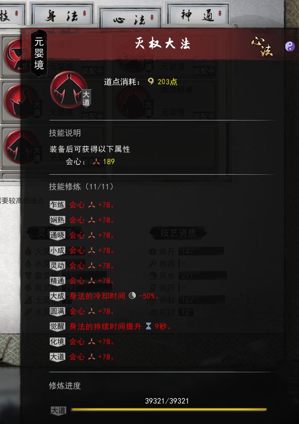 首先是选择能够减少武技CD的技能,神通,逆天改命。