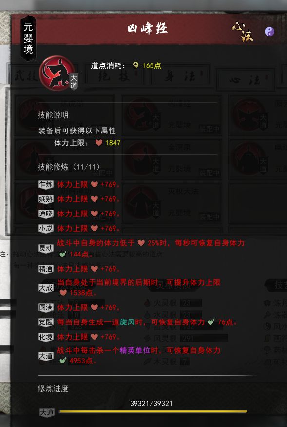 然后这套的逆天改命的选择是水力四射+武法入门+武法进阶+武法精通+兵刃精通。