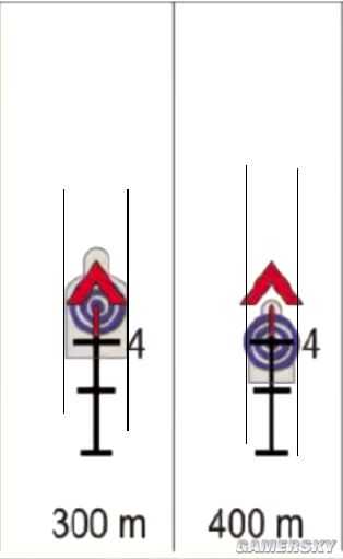 400m的图,第一条黑色横线(标有数字4)的宽=敌人的肩宽时,敌人的位置处于400m。