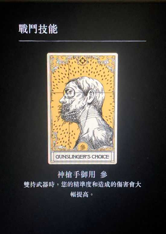 如果你是双枪爱好者绝对不容错过,特别是喜欢铁道游击队和燕双鹰的,带上你的毛瑟和半自动手枪乱杀吧!当然用爱发电用双左轮开死亡之眼打身子伤害也很高,但是性价比个人感觉比较低了。