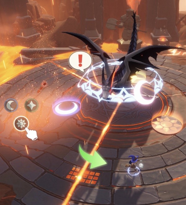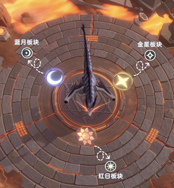 2.每隔一段时间,封印阵中的印记会松动,会使其中一个印记板块发生爆炸,要及时判断爆炸板块,并通过板块按钮来进行移动以躲避爆炸。