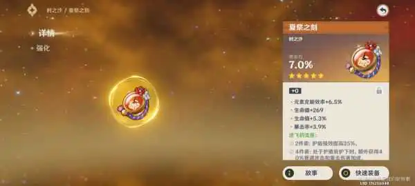 这里可以看到暴击率和元素充能的数值是满值,而生命的两个值是3档,我们提升4级拿第一个磁条。