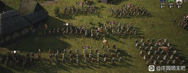 最普通的战斗方式是把雇佣兵和长矛盾牌民兵用坚守阵地模式顶在前面吸引敌方冲击。然后亲卫绕到敌人后方,采取多打一的背冲,打溃散敌人一队后,再拉开继续背冲,这样损失小,不能所有兵都在一起打绞肉战。