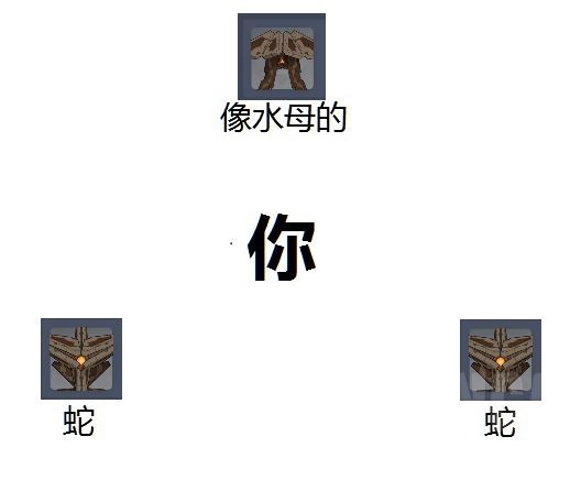 绕到“空中飞的”的右侧攻击,此时“像水母的”会撞过来