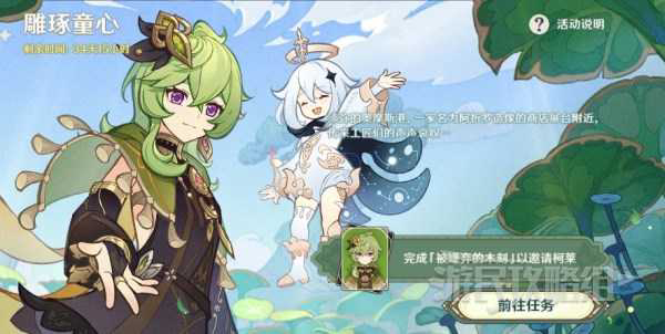 《原神》3.0版本雕琢童心活动的前置任务是“被嫌弃的木刻”,完成此任务可以获得80原石和精致留影机,同时也可以解锁柯莱,许多小伙伴可能还不太清楚任务位置在哪,下面就为大家介绍一下《原神》柯莱领取方法及被嫌弃的木刻任务位置,希望对大家有所帮助。