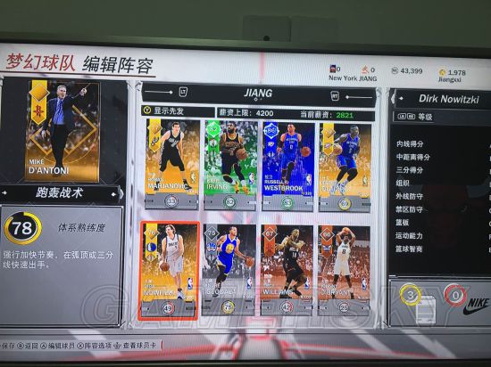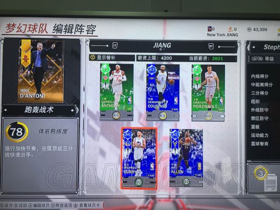 4、如果我用你这个阵容,除了大前和中锋,剩余三个位置不停突分,看好持球手,注意别掉球,三到四次内外传导之后,一定有空位三分,就看你能不能投进了。当然,这个战术如果把大中锋拿下更好。另外,要打够分数,防守一定要好,你这个阵容有防守漏洞,必须手动跟人。