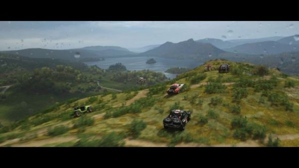 这些内容以“公路赛”、“冲刺赛”(只进行一圈)、越野赛(不经过道路)等形式在游戏地图上逐一展开,所有的赛事都分为多个等级,完成了低等级的挑战就会解锁对应高等级的赛事,已完成的赛事会变为金色,未完成的赛事则有着黄色边框的“新”字作为提醒。而在地图选项中可以对各个类型的赛事进行筛选,所以也不会有眼花缭乱的观感。地平线中的赛事类型不仅覆盖了我们所熟知的常规类型,还有这视觉冲击力爆表的“表演赛”可供游玩,在表演赛中玩家操控的车辆将与气垫船、火车等平时完全无法想象的庞然大物并驾齐驱,甚至完成一些“飞跃地平线”的极限演出。