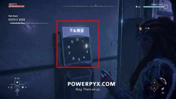 如果在门口的密码面板等了好久但没有进行操作或多次输入错误密码的话,埃洛伊会说类似“也许应该检查一下数据点,我在特拉维斯·塔特处找到的日志里有个数字,它可能会起作用…是什么来着?”这样的话,触发这句话之后可以在界面右下角弹出数据点提示,名为【坏念头】,密码就在此数据点文本当中。