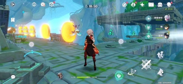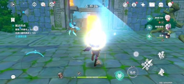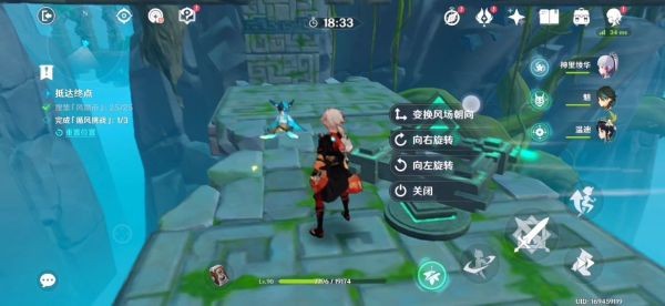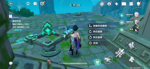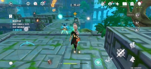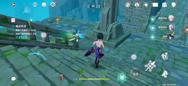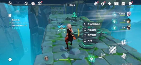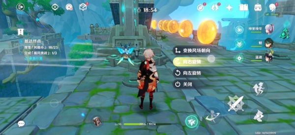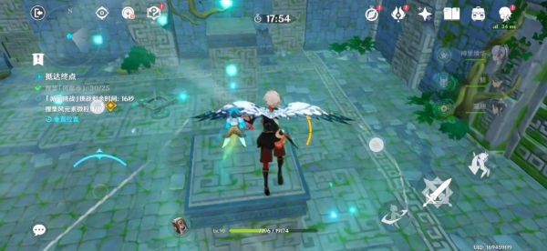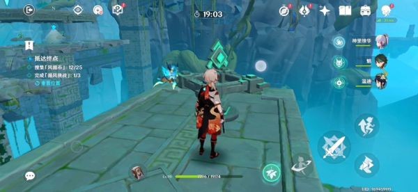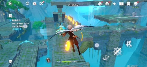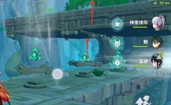 16.跟着蓝色小球走就行了 前三个风场都是有利于我们的 不用管。飞到下图东边有一个高的柱子 如果没有万叶的话我们就拿不到那个高柱子上的蓝色小球了