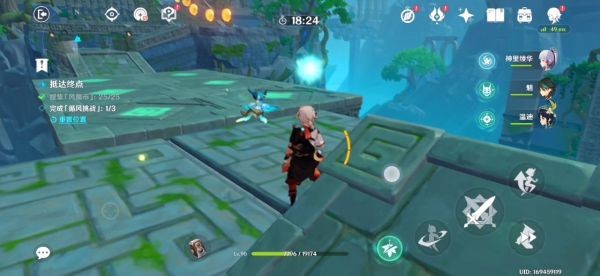 18.继续跟着蓝色小球走 走到尽头刚好是一个解锁的机关。这时完成第三个挑战