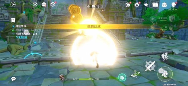 4.拾取完蓝色小球 这时挑战是完成的。然后我们开始打怪 (固若金汤)