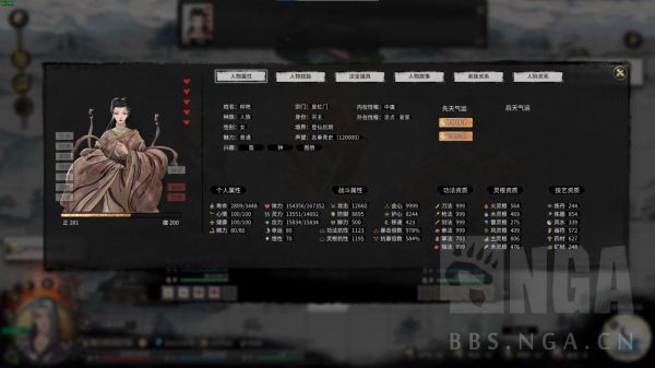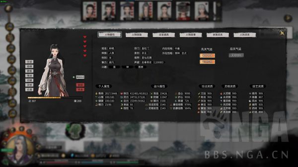 先贴小修改后的60年状态,不改要肝出全修来吃宗门果子刷蘑菇怕要上百年吧,至少拳,掌,剑/枪,指,风,水,雷这几个关键都要把资质肝到300左右,词条都肝满更是几乎不可能的任务。
