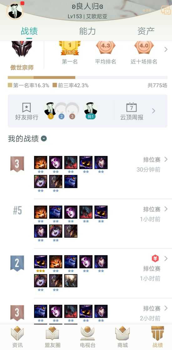 分析了一下这几天没吃到分的几局大部分是因为没复活甲而且剑魔二星时间太晚,导致4阶段被入太多。还有前期千万别拿小法,这玩意前期太卡经济,没到6人口之前永远不拿!卡牌必留,韦鲁斯冰女必留(我这条命都是二星韦鲁斯冰女给的)