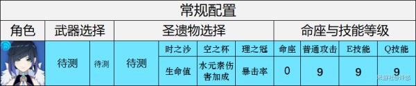 夜兰的培养方向主要有两种思路:通过堆叠元素充能效率实现高频释放Q技能的增伤辅助流,以及通过生命值、水元素伤害加成词条提升自身伤害的副C流。二者的区别在于沙漏和杯子的主词条选择。这里主词条共有四种搭配方案,为了导致文章出现不必要的繁杂,这里直接向各位提供结果:经测试,对于增伤辅助流,充能沙+水伤杯>充能沙+生命杯,对于输出向副C流,生命沙+水伤杯>生命沙+生命杯。接下来将以以上结论为基础进入圣遗物和武器的测试环节。