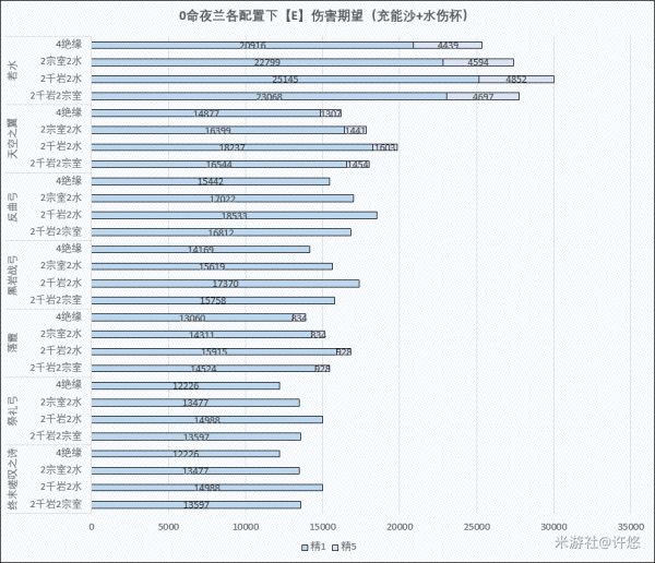 这里大家需要注意的是,选择充能沙的情况下,相当于默认放弃了【破局矢】以及E技能的伤害,转而得到更高覆盖率的Q技能后台输出以及增伤效果。此情况下的武器选择并没有太大变化,若水仍然是绝对的专武,终末嗟叹之诗虽然伤害不高但能提供最好的辅助效果,另外反曲弓和落霞的表现甚至有超过精1天空之翼的趋势;圣遗物方案之中,4绝缘是最优选择。