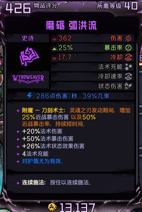 诅咒机智盾伤害更高,缺点是触发范围只有周围的几米,大概是近战的极限距离再近一点,走远了灵魂之刃触发不了。附魔建议还是这个,因为完全放弃生存,需要一点回血来抵消DOT