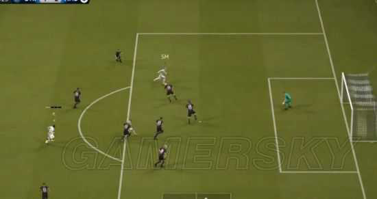 那么手动和自动的区别在哪里?简单点说手动模式下的传球射门出球的方向就是游戏中球员出脚瞬间左摇杆LS当时瞄准的方向。那么有人会问了,本来不就是吗,不往你瞄的方向难道反方向吗?我再举个极端的例子,假设你在用键盘玩FIFA,此事你如果是手动,那么你能出球方向就只有八个,左上 上 右上 右 右下 下 左下 左,很明显这样无法顺利进行游戏,但如果是自动,电脑就会对出球方向进行修正,将球送向离你瞄准方向附近的球员或是球门的某个死角。换句话说,键盘并不适合玩手动,你需要一个带有360度摇杆的控制器。(这里做个小小的补充,手动控制下,你只要过了半场是可以对着自家球门方向射门的,也可以在对方门将离球门较远时使用长传键或者挑传组合键吊门如视频中最后一球)