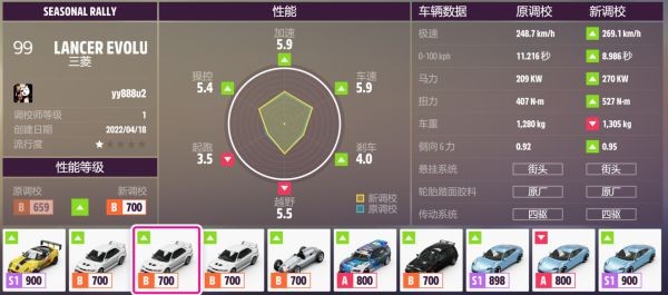 总感觉好像不是第一次出现斯巴鲁大战三菱的任务了。为了帮到喜欢斯巴鲁、喜欢三菱的玩家,或者是富哥们,这里选择3台车。值得一提的是,这些车全都是原厂四驱,如果不开手动离合器就会慢,要么就得浪费马力去升级离合器。为了治好强迫症,方便自动挡和手离哥们,多种调教大放送。