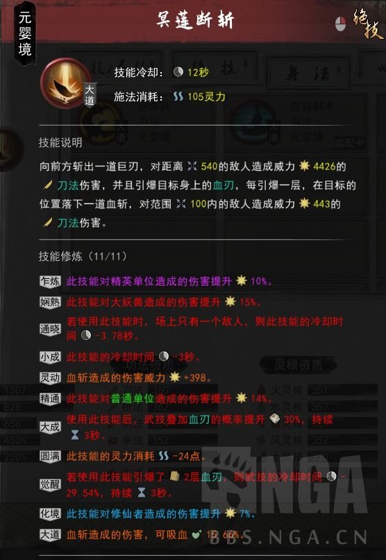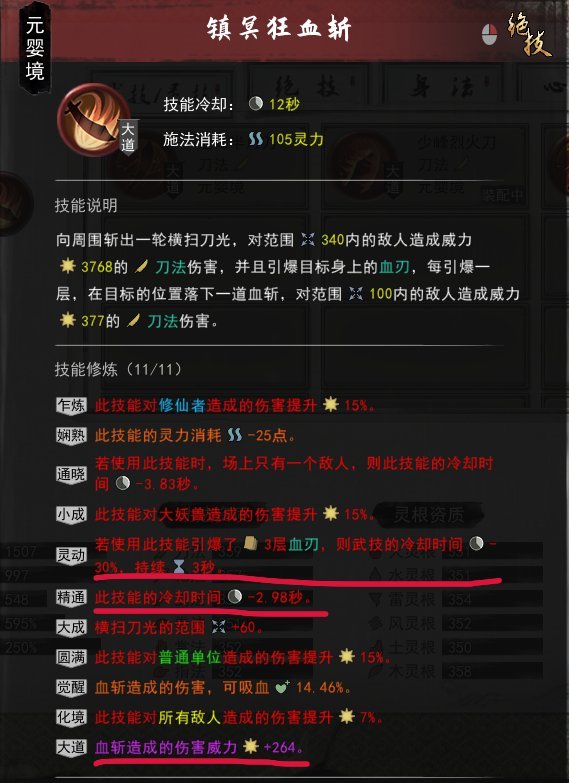 大家将就着看大概雏形是这样的还不是完全体,我逆天改命用的三剑灵 兵刃 血魔过度,没有出武技减CD所以还不是完全体要到化神才行了。