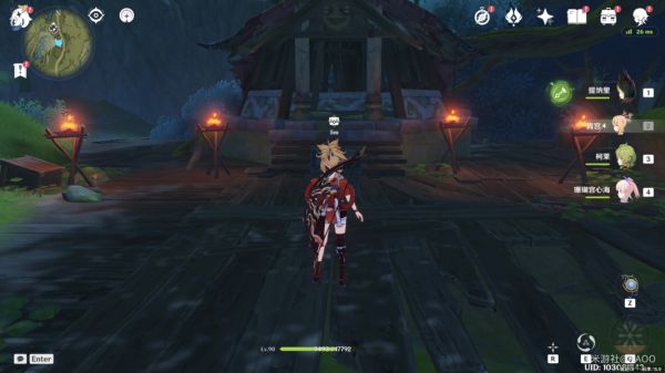 左起第一个火把亮起,击杀营地内的丘丘人守卫。