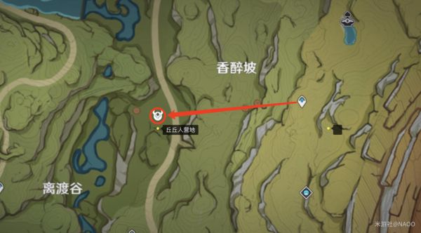 今天带大家解锁香醉坡附近丘丘人营地的一个隐藏宝箱。这个宝箱解锁需要时间比较长,大家可以当日常委托一样,每天过来打个卡,第五天可解锁精致宝箱。