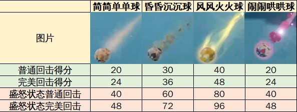 根据「嘟嘟光盾」击球的时机,回击将被判定为「普通回击」和「完美回击」。「完美回击」将造成更高的伤害。