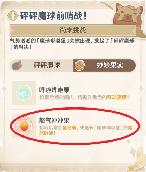 挑战中可能出现具有不同效果的「砰砰魔球」和「妙妙果实」。规避「砰砰魔球」的负面效果充分利用「妙妙果实」的特性,能使挑战更加顺利!