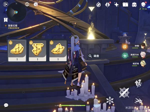 1.根据提示位置,找到下图的小星星位置,调查后回到秘境入口并进入!
