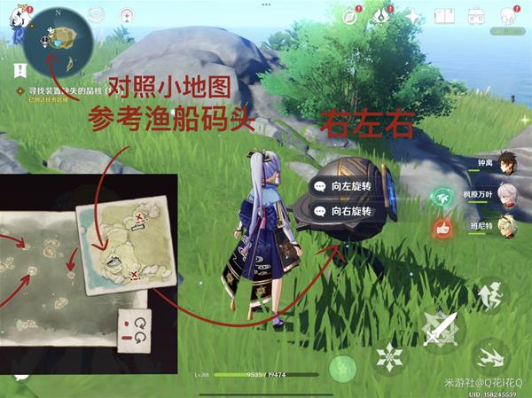 2.参考下图调整,对照小地图参考渔船找位置,