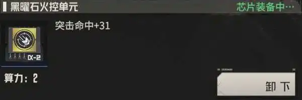 黄色芯片推荐“黑曜石火控单元”,核心属性提升的是“突击命中”。