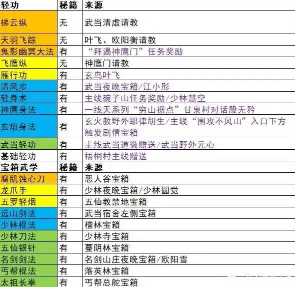 《逸剑风云决》中的武学、心法与轻功等各式各样的功法都需要通过向人请教或者通过机遇来获取,下面请看玩家“凉秋之湫”带来的《逸剑风云决》全功法获取途径整理,希望能帮助到大家。