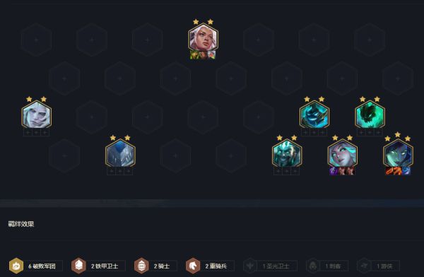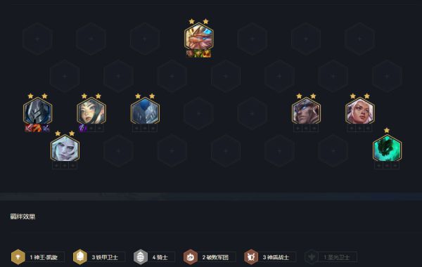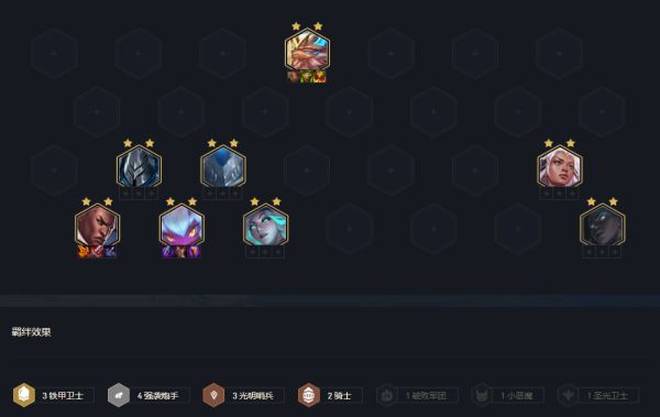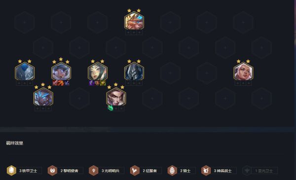 阵容关键羁绊:3铁+4骑士+3神盾。