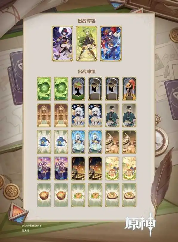 由于热斗模式快速行动的因素,需要打大量元素伤害,并且由于对手也有快速行动,所以只需要打大量的元素伤害就可以绝对限制对手的行动(为了避免你打元素伤害躲元素),其中[甘雨]的冰召唤物和5费普通攻击还可以打后台穿透伤害(斩杀后台角色)[莫娜]可以频繁挂水,又有额外的快速切换行动[菲谢尔]则可以频繁挂雷,雷元素反应又是万配反应,所以也是十分般配