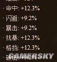 第四类:战斗中的几率属性:包括命中,闪避,暴击,抗暴,格挡,破击。其中命中和闪避对应,暴击和抗暴对应,格挡和破击对应。命中、暴击、破击偏向进攻,闪避、抗暴、格挡偏向防守。