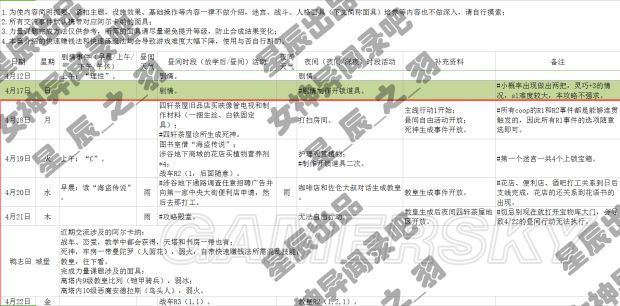 1)修正1.1版4/20夜间的严重编排错误,重新调整了4月和关联的行动编排。
