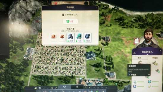中后期,有运输码头之后,工人农民工匠专门弄几个岛养着,劳动力用运输码头转移。重点来了,举个例子,在没有工人的岛采铁矿,用运输码头提供劳动力,然后把铁矿生产力拉满到额外50%,神奇的事情发生了。