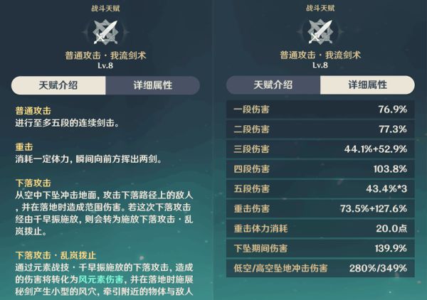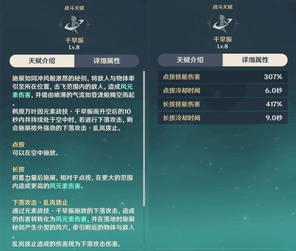 表现为:自身通过元素战技升空后,可触发特殊的下落攻击·乱岚拨止