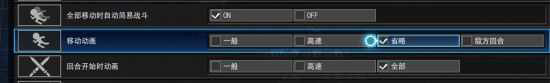 开启“全部移动”,开启“全部移动时自动建议战斗”(不需要每次都点确定),移动动画设置为“省略”。