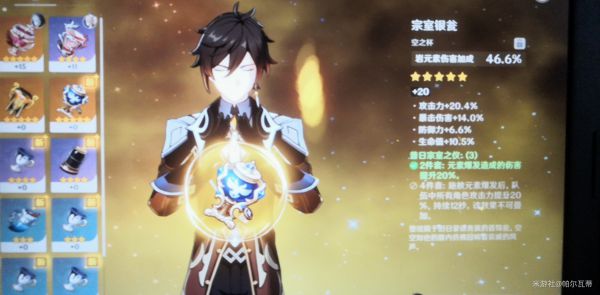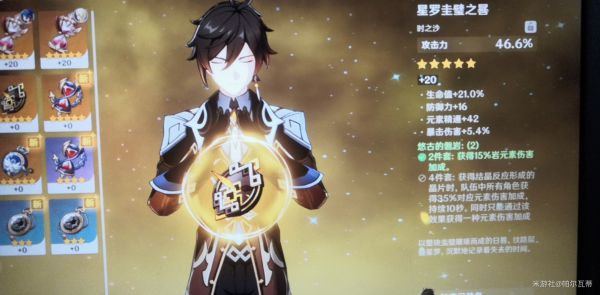 三、圣遗物部分:双岩+双宗师。保证大招输出。