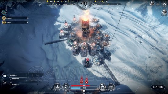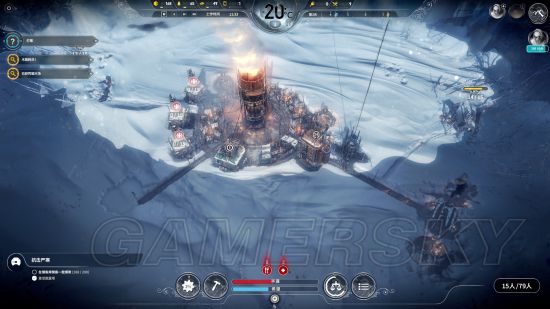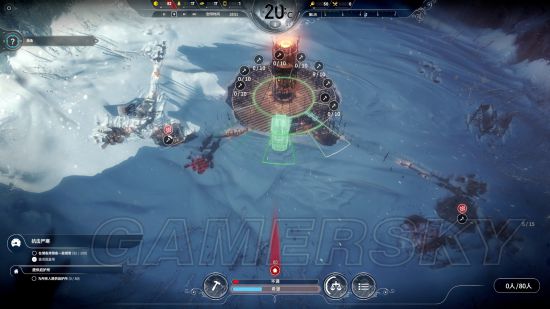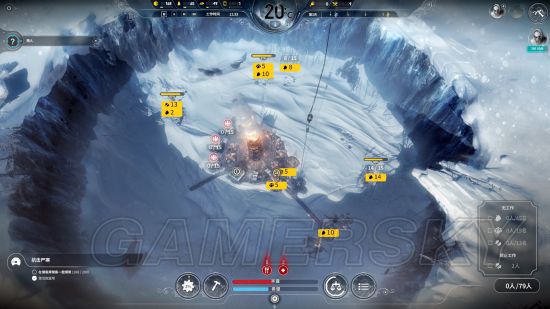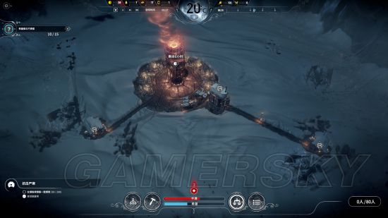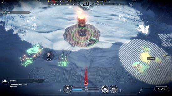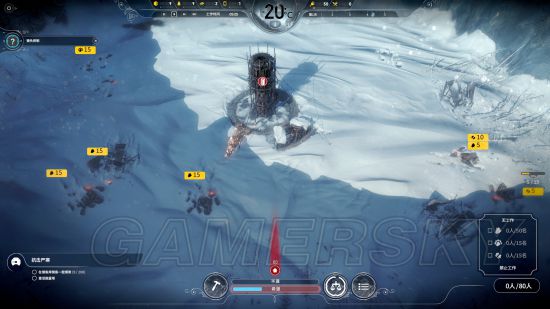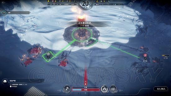 开局工作安排好,就来第一次基建,如下图,首选开始建筑是2个收集站。收集站可以用更少的人口,更安全性的保障工人工作,比你在冰天雪地里工作 出现冻伤的几率大幅度下降。更重要的是造点挖完地图上这些资源,对我们区域规划有好处,你不想到时候造个东西有个木箱挡住你吧。。