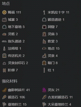 除了新的装备,DLC最重要的2个强化资源:「幽影树碎片」、「灵灰」也都在地图上标记了详细的收集点位。幽影树碎片可以提升你的幽影树庇护等级,增加攻击力和减伤率,非常建议各位在游戏前期优先收集。而灵灰庇护可以进一步强化你的骨灰、灵马等级,让你能够更轻松地驰骋幽影之地。