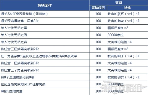 完成奖励:学士的羽笔×1、大英雄的经验×4、30000摩拉、原石×100