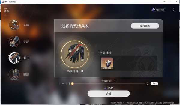 可以花费遗器残骸合成指定的套装的指定部位,不过目前200个遗器残骸的消耗量有点大,遗器残骸的获取方式目前貌似只有分解金遗器残骸,一个给10个残骸(好少),还有大月卡给200个。