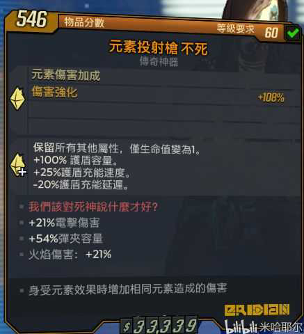 随着dlc3的来临,等级上限提到了60,多了三个技能点点到蓝系。此bd延续之前57级的老bd,武器采用dlc3强力新武器(和狂战相同);盾,雷,模组和神器不变。