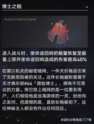 奇物方面,最核心的是博士之袍,