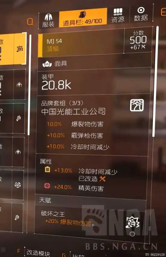 具体就是,光能三件套,阿尔卑斯背包和阿尔卑斯衣服,其实可以更换天命衣服这样多5%技能强度。